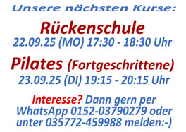 - Neue Präventionskurse (gefördert bis zu 100% von vielen Krankenkassen)!